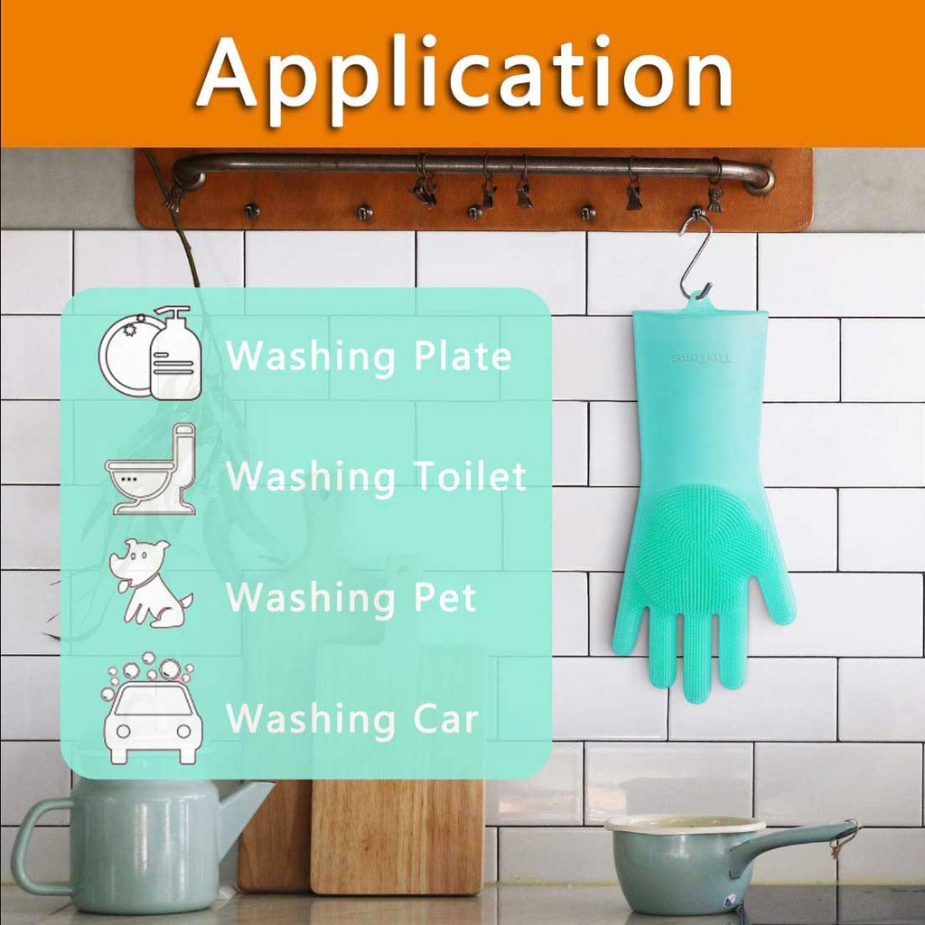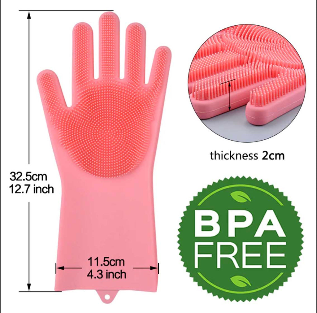SILICONE GLOVES Food grade silikon, Desain inovatif Sarung Tangan Silikon ini sangat mudah digunakan. Sarung tangan silikon yang praktis ini dilengkapi dengan sikat penggosok piring, tepat di telapak tangan lembut tetapi kuat dan sangat fleksibel, sarung tangan ini sangat cocok untuk membersihkan dapur, karpet, mandi, mobil, bahkan hewan peliharaan Anda!